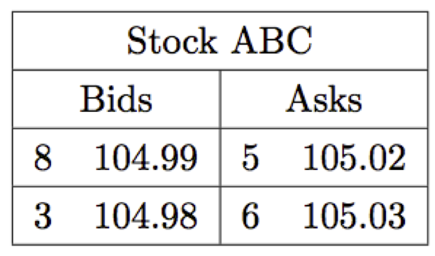 A simplified example of how a trader would view the LOB shown in Figure 1.1.
